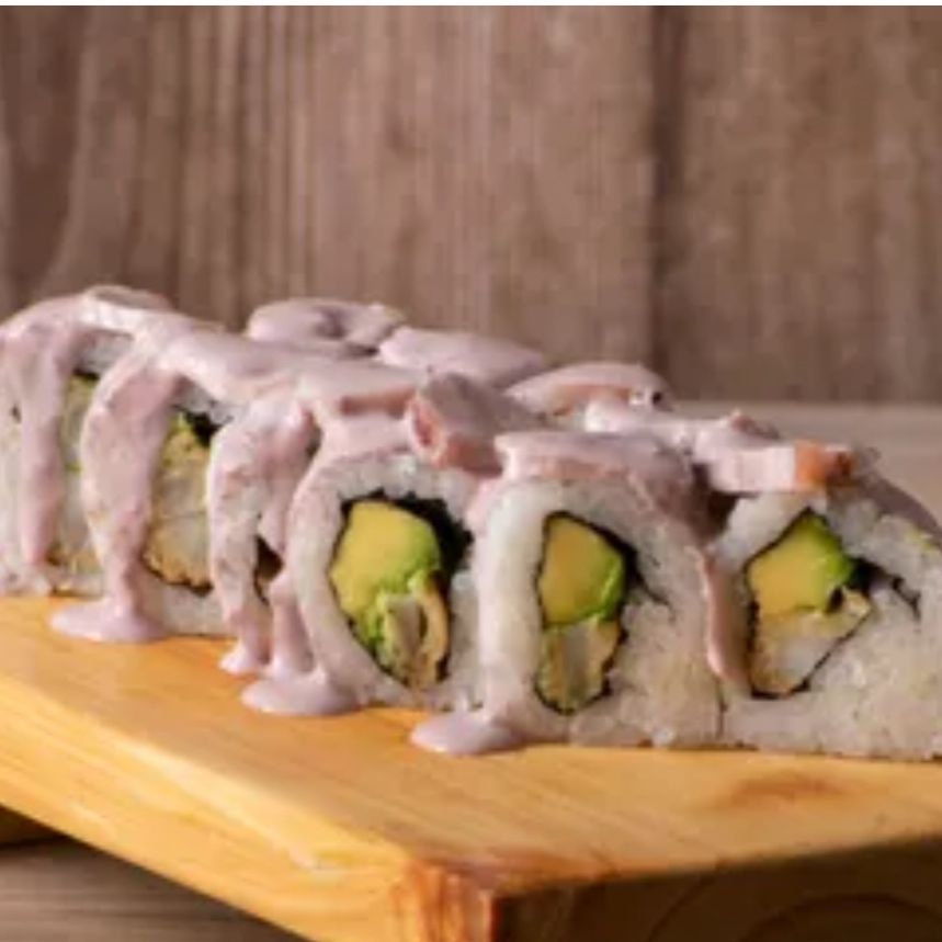 10 Maki Relleno de palta y pescado furai cubierto con salsa acevichada