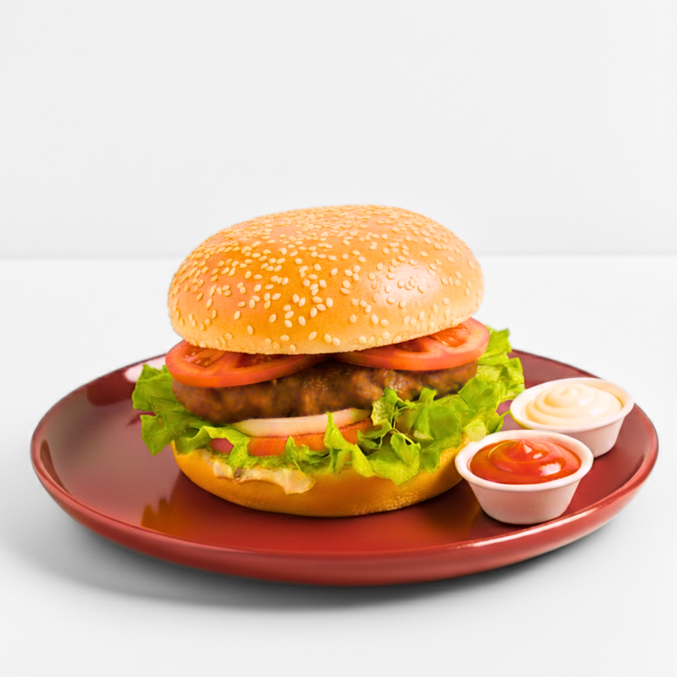 Hamburguesa casera con tremendos 200g carne de res, queso cheddar, tomate, cebolla blanca, lechuga y cremas