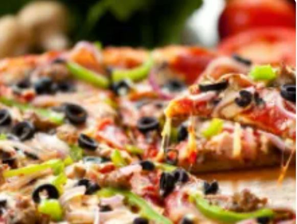 Salsa marinera con queso mozzarella, champiñones,aceitunas verdes, pimientos, cebolla blanca, jamón, Tocino, pepperoni y salami
