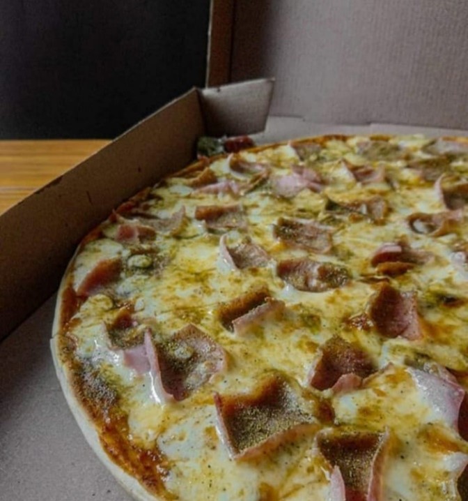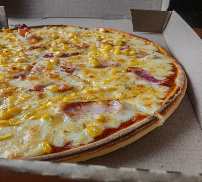 Salsa napolitana, queso mozzarella, maíz y tocino. 4 Porciones.