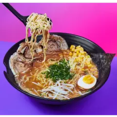 Ebi furai, queso crema, togarashi, por fuera crema pizzera, orégano, salsa anguila y flambeado.