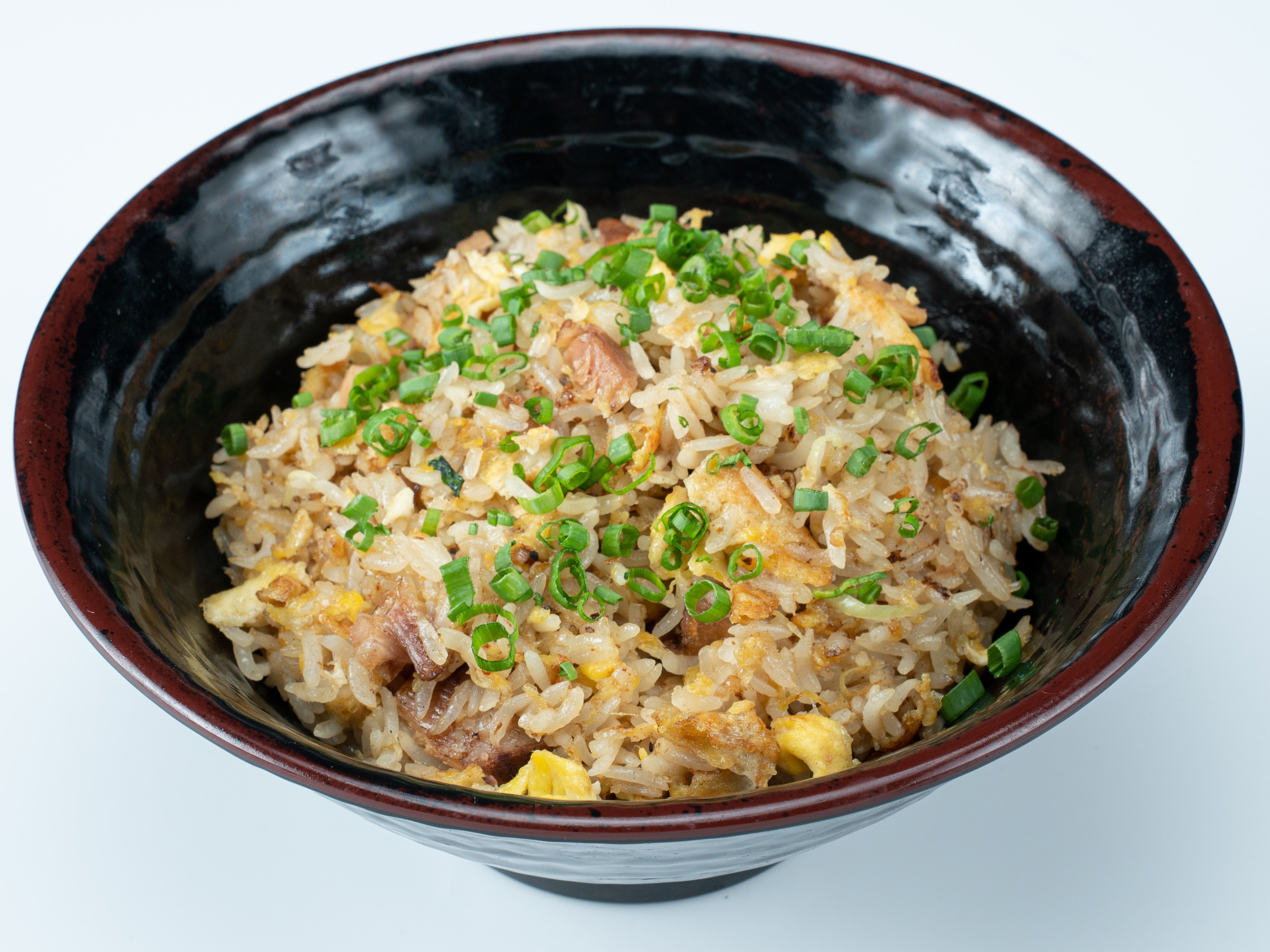 Arroz frito sazonado en salsa especial de la casa, negui (poro japonés) y huevo.
