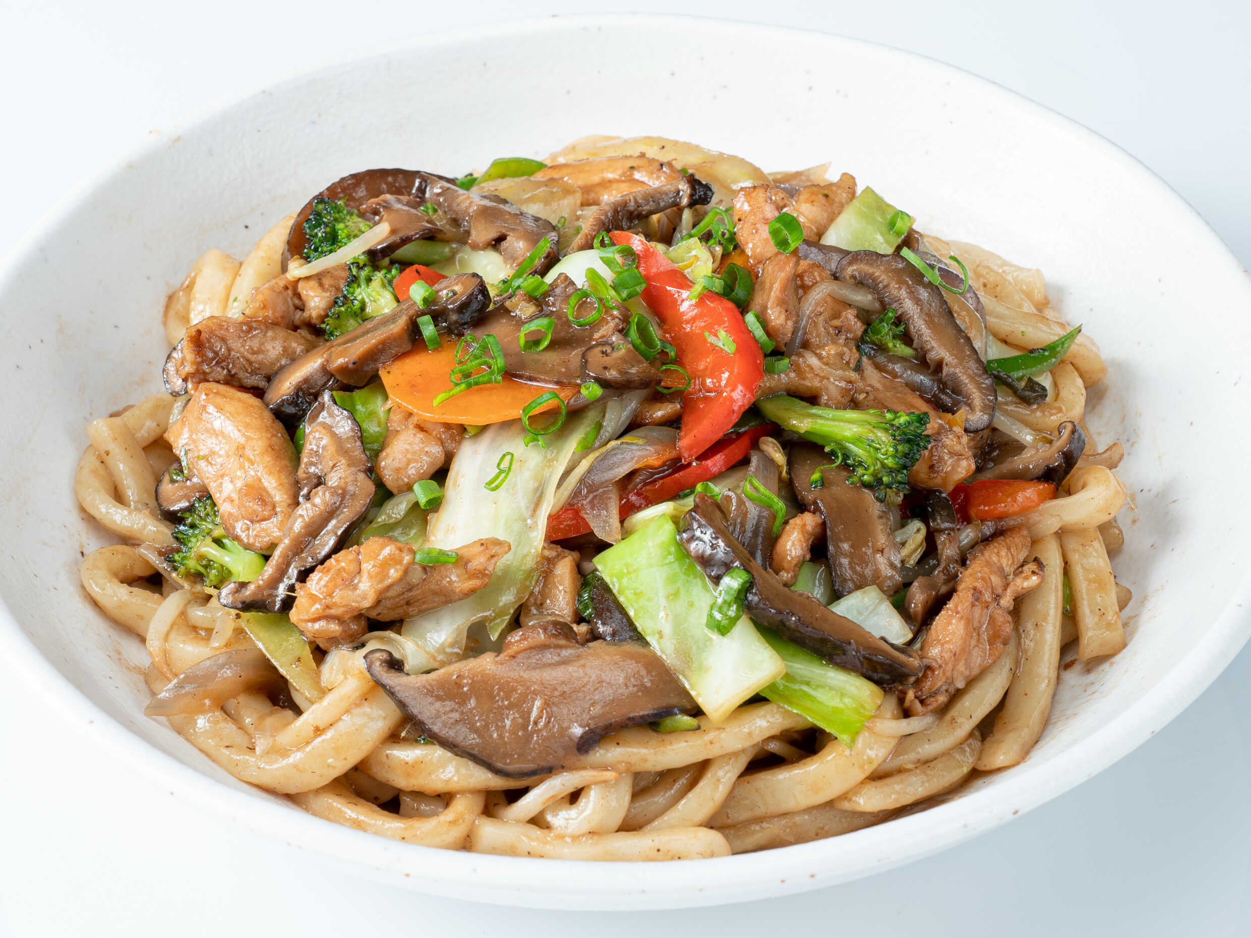 Fideos udón con verduras salteadas al wok.