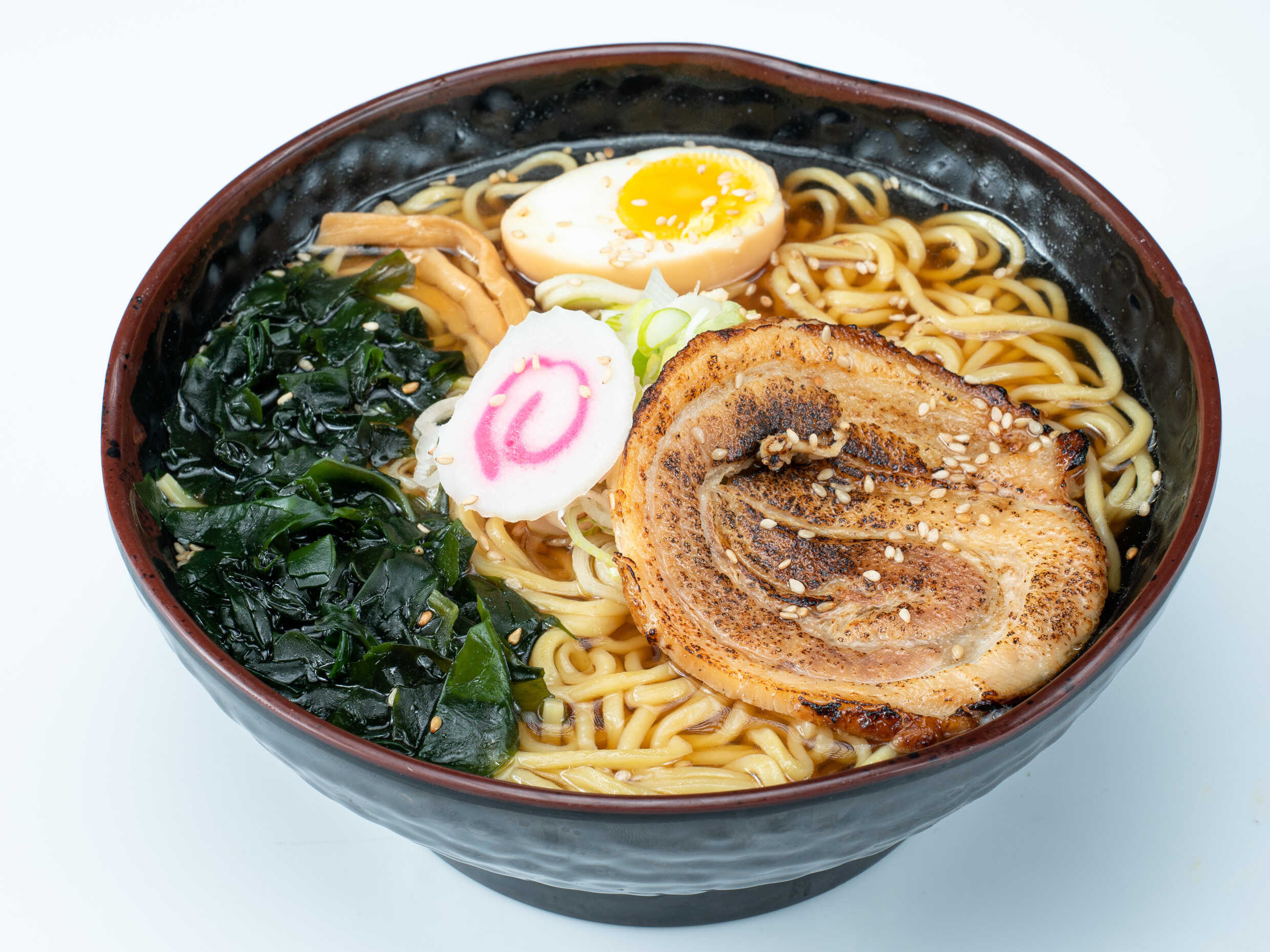 Sopa de fideo ramen japonés y caldo a base de shoyu (siyao japonés), acompañado de chashu (carne de cerdo), menma 8 brotes de bambú), algas y otras verduras.