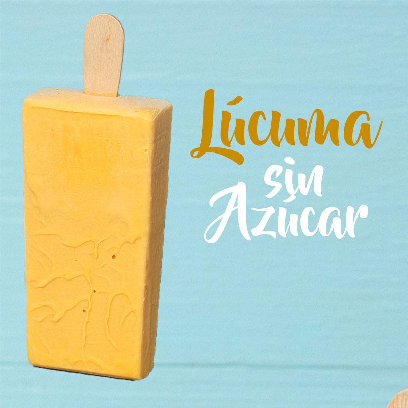 Helado tipo paleta de lúcuma, rellena con fudge de chocolate.