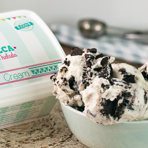 Helado de crema estilo italiano con topping de galleta Oreo.