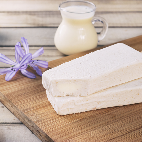 Helado tipo paleta de suspiro limeño con pedazos de merengue rellena de manjar blanco.