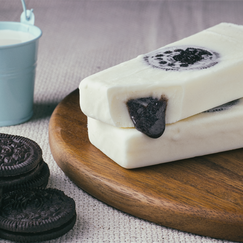 Helado tipo paleta de crema, rellena con crema de Oreo.