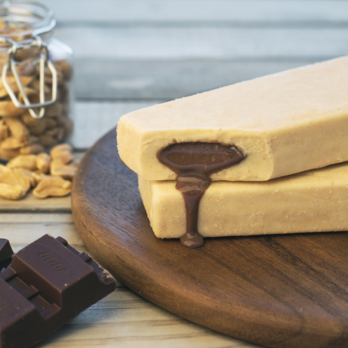 Helado tipo paleta de maní relleno con fudge de chocolate.