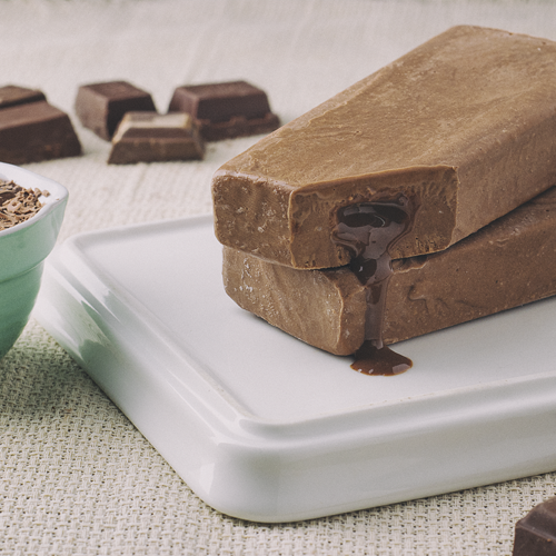 Helado tipo paleta de chocolate, rellena con fudge de chocolate.