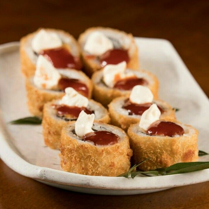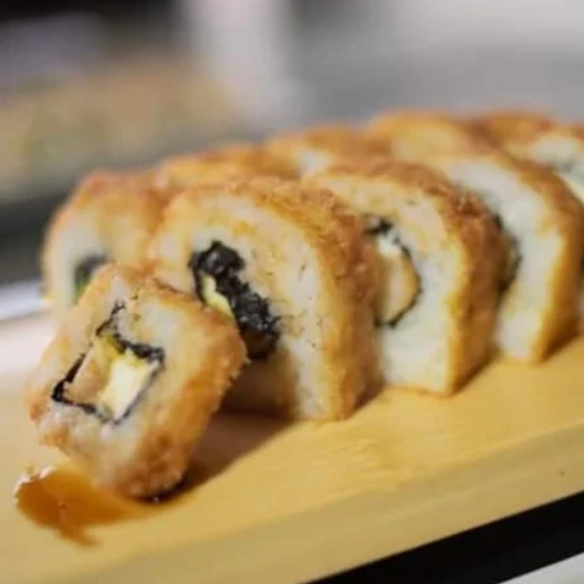 Maki bañado en maza tempura y frito, relleno de palta zakana más 2 salsas a elección. Incluye Pepsi 355 ml